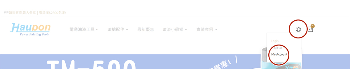 1.(網頁版)請點選網頁右上方的個人圖示,選擇「Login」登入後,選擇「My Account」進入個人頁面。