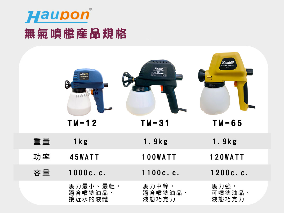 無氣噴槍是較早期的電動噴槍款式, 由於近年來塗料的種類越來越多,此系列無氣噴槍反而更活躍於食品噴塗方面。
