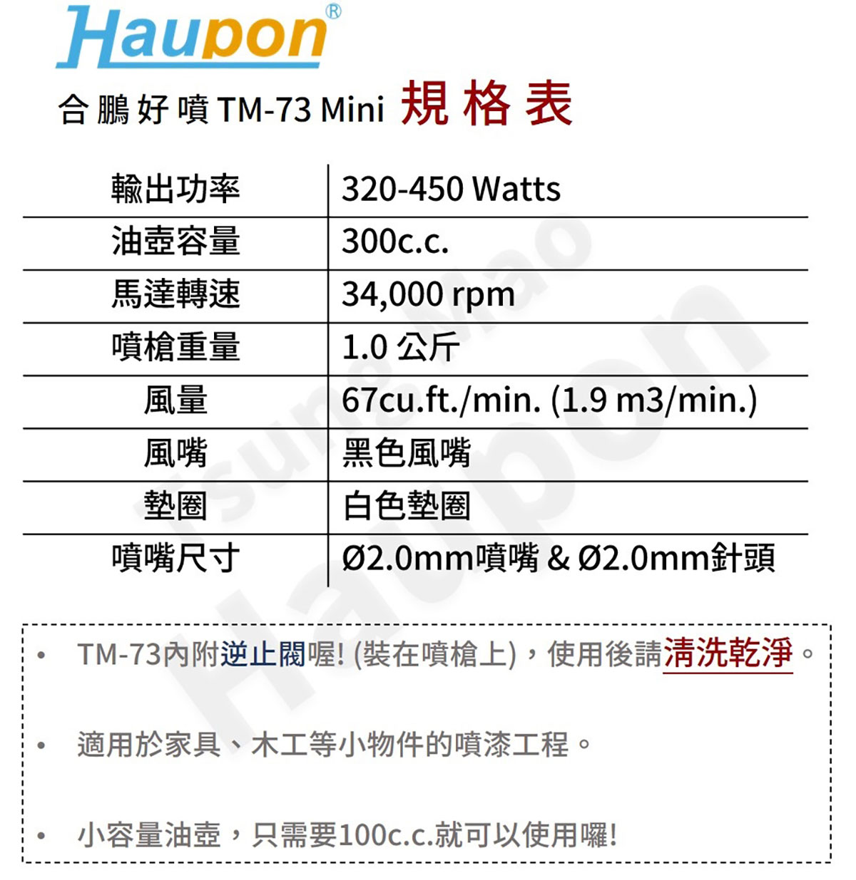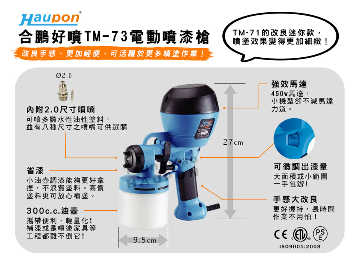 • 特性: 強力小型款,輕便應付各種家具與少量噴塗 • 尺寸 (cm):