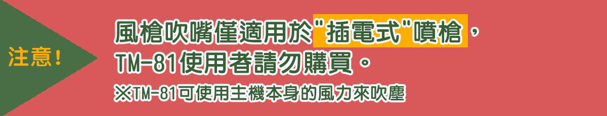 ⚠【注意】風槍吹嘴僅適用於「插電式」噴槍,TM-81使用者請勿購買!