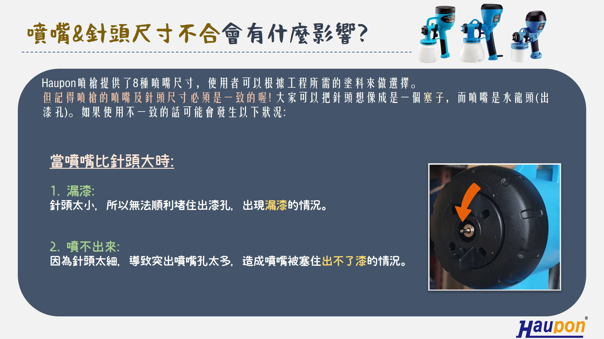 裝錯尺寸的話,噴槍可能會發生以下這幾種問題
